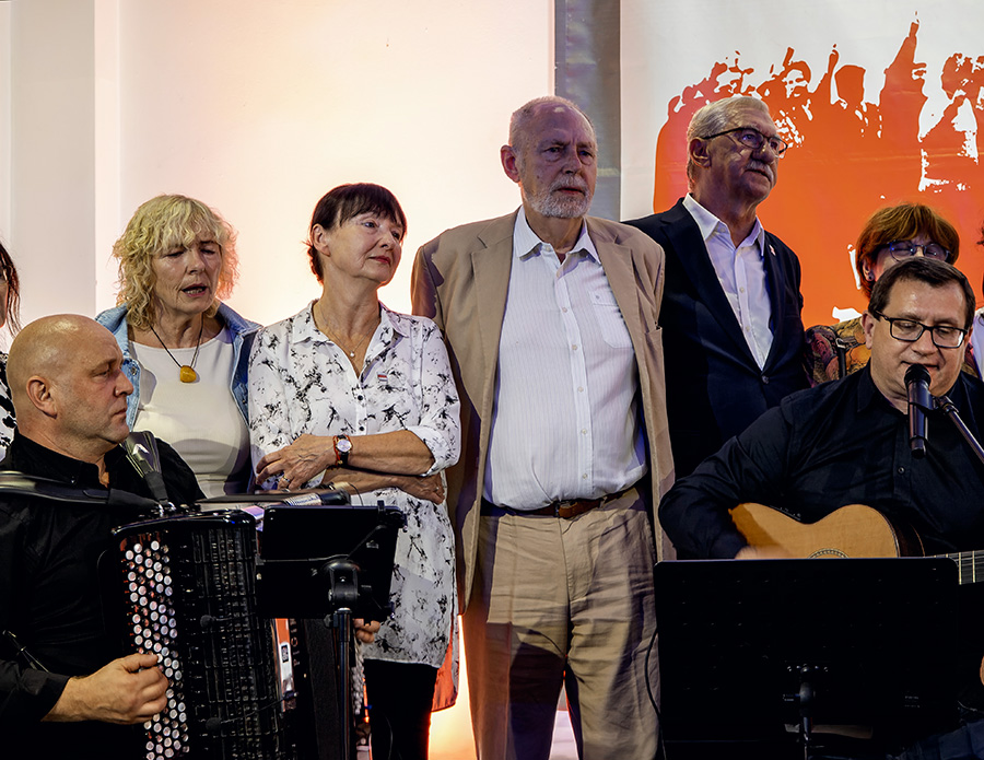 Na zakończenie tego mini koncertu muzycznego, wielu uczestników spotkania przyłączyło się co chóru Sieci Solidarności i wspólnie brawurowo wykonaliśmy MURY Jacka Kaczmarskiego.