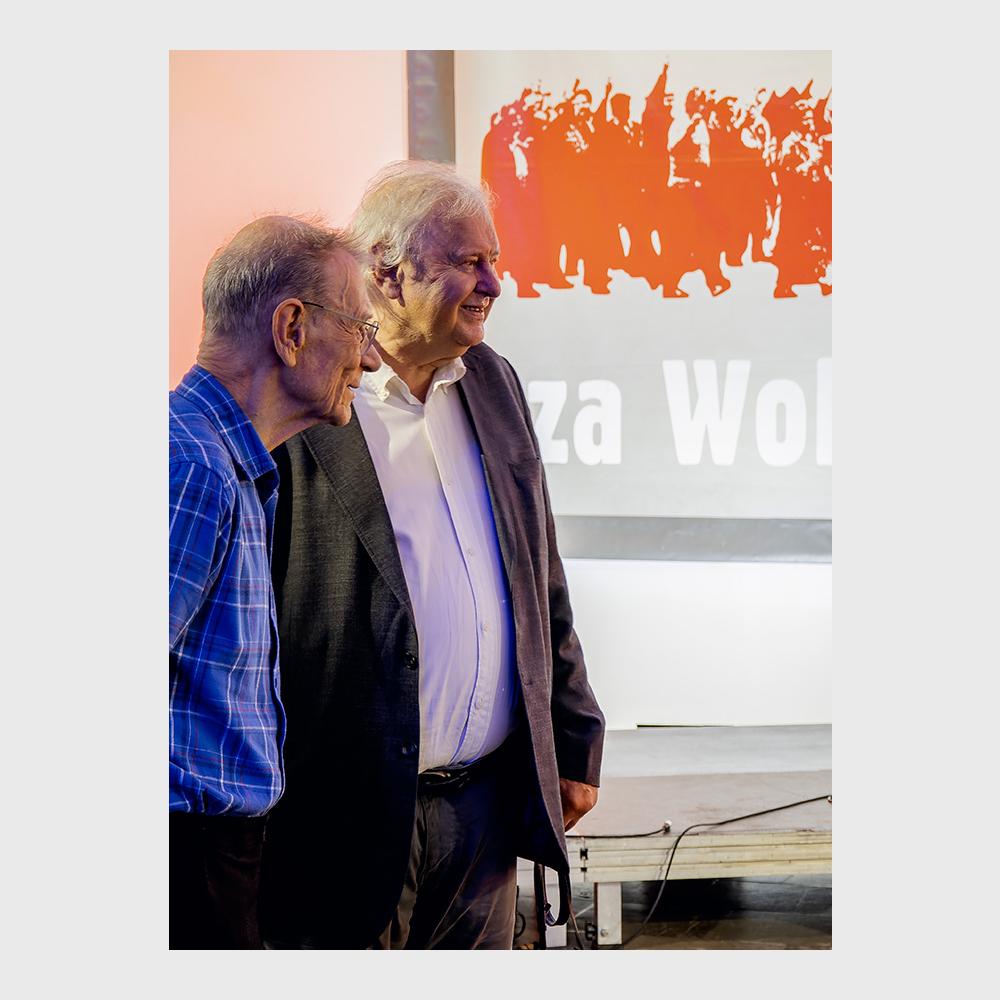 Gdy, do Galerii Białej weszli Adam Michnik oraz Władysław Frasyniuk rozległy się ogromne brawa, to była prawdziwa owacja, gdy szli w szpalerze uczestników spotkania, która chyba zaskoczyła a nawet onieśmieliła naszych gości.