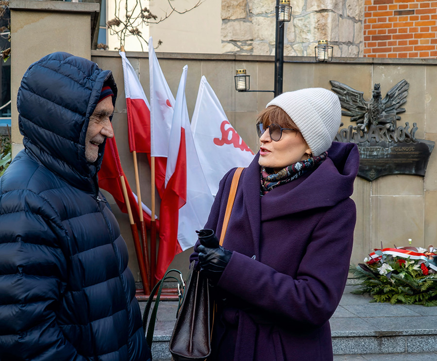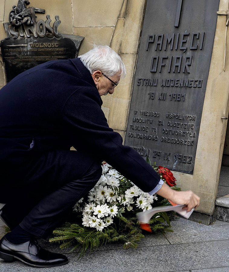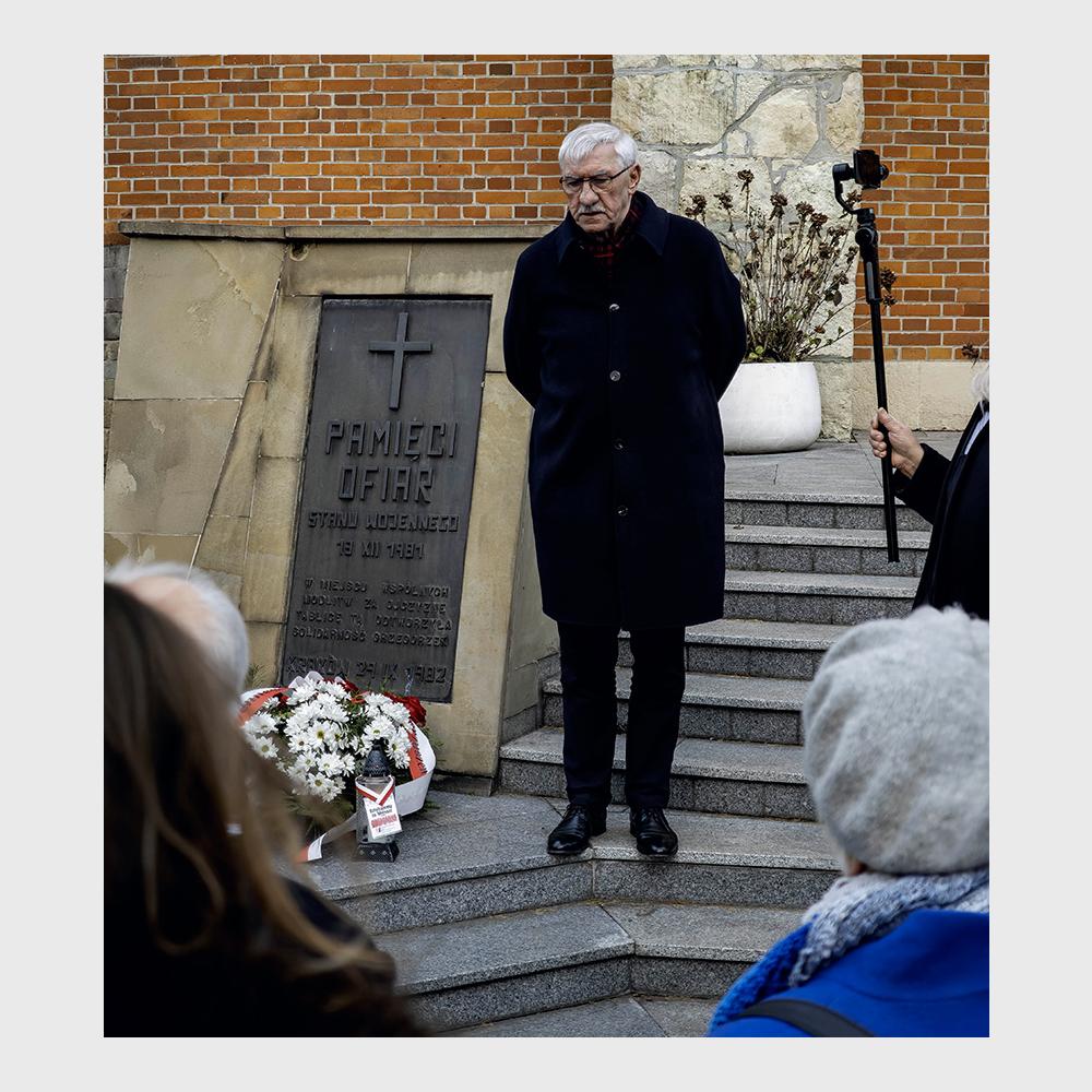 Po złożeniu kwiatów oraz zapaleniu zniczy z napisem "Dziękujemy za wolność", głos zabrał prezes Edward Nowak, który przypomniał niektóre ofiary stanu wojennego: zastrzelonych górników Kopalni Wujek, niektóre ofiary z Krakowa: Bogdan Włosik, Ryszard Smagur, Janina Drabowska, Janusz Bielik czy Adam Grudziński.