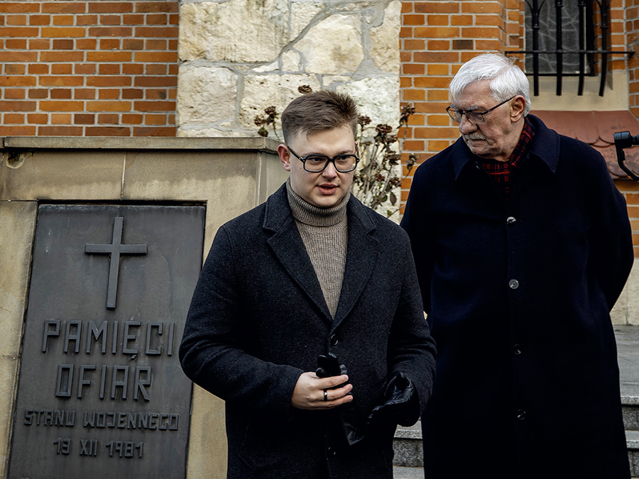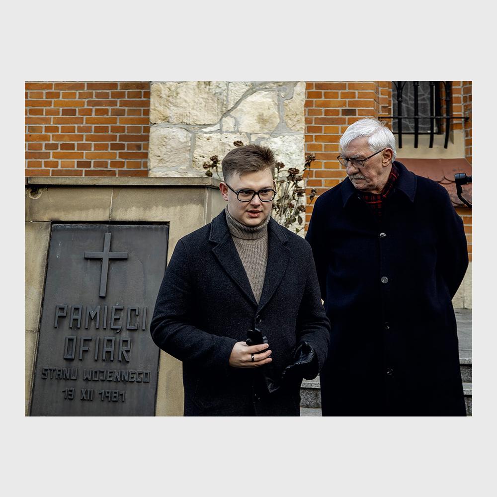 Następnie głos zabrali przedstawiciele organizacji młodzieżowych: Bartek Morawik z Młodzieżowego KOD oraz Kamil Kociołek z Nowej Generacji; obecny był także Bartek Kowalczyk - wiceprzewodniczący Młodzieżowej Rady Krakowa, ale z powodu przenikliwego wiatru już nie zabrał głosu. Młodzi ludzie zapewniali nas, że będą dbać o zachowanie pamięci o ofiarach stanu wojennego.